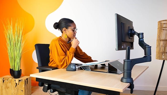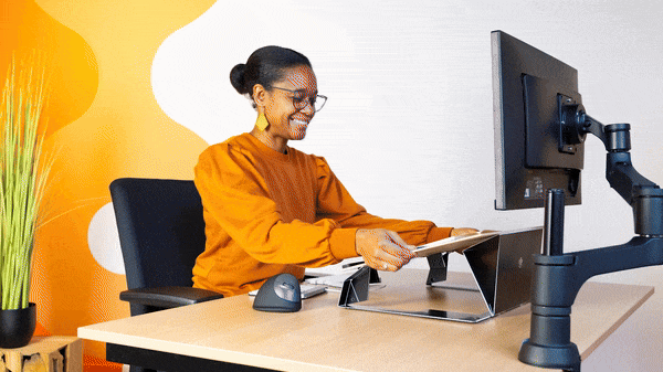 Sie müssen sich Notizen machen? Dieser Dokumentenhalter lässt sich mühelos in eine Schreibunterlage umgestalten, indem Sie die Platte zu sich heran ziehen. Weil Sie die Arbeit näher zu sich bringen, verhindern Sie eine gekrümmte Körperhaltung und bleiben auch beim Schreiben aufrecht. Also ideal zum Lesen und Schreiben!