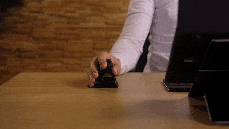 De DPI knop bevindt zich aan de onderkant van de muis en is gelabeld ‘DPI’. Met 1 keer klikken verandert de DPI 1 keer. De DPI is aan te passen van 500-1750. Tip: Een lagere cursorsnelheid stimuleert een muisbeweging vanuit de arm en voorkomt belastende repeterende bewegingen vanuit de pols